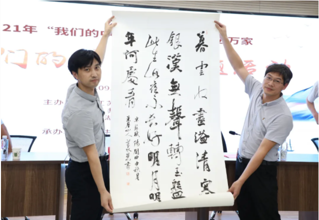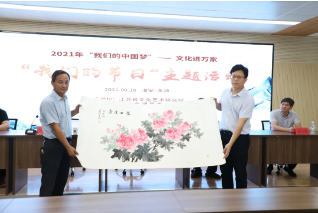 楚小庆指出,传承弘扬中华优秀传统文化,是推进社会主义文化强国建设、提高国家文化软实力的重要内容。通过举办“我们的节日”主题文化活动,向广大人民群众介绍二十四节气以及端午节、中秋节等传统节日的相关民俗文化活动渊源,可以进一步丰富广大人民群众精神文化需求,为做好传承与发展中华传统文化的工作贡献一份力量。同时,此次江苏省文化艺术研究院来到金湖县吕良镇,不仅仅是送文化下基层,也是来调研学习金湖县吕良镇在农房改善和文旅发展上取得的先进经验。活动中,江苏省文化艺术研究院向吕良镇捐赠了《盛世逢春》《阳关曲·中秋月》《水调歌头》三幅书画作品。